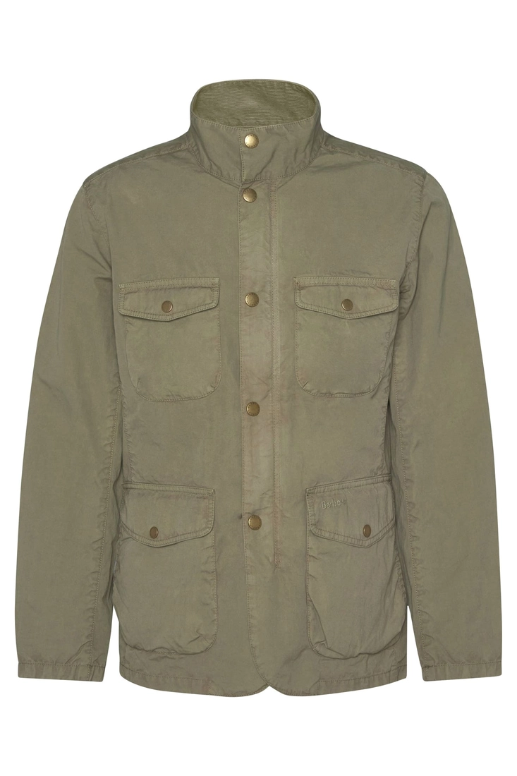 Den har stativkrage, dragkedja och tryckknappar framtill. Fyra rymliga fickor ger bra med plats, och Barbour loggan på ficklocket är en fin detalj.