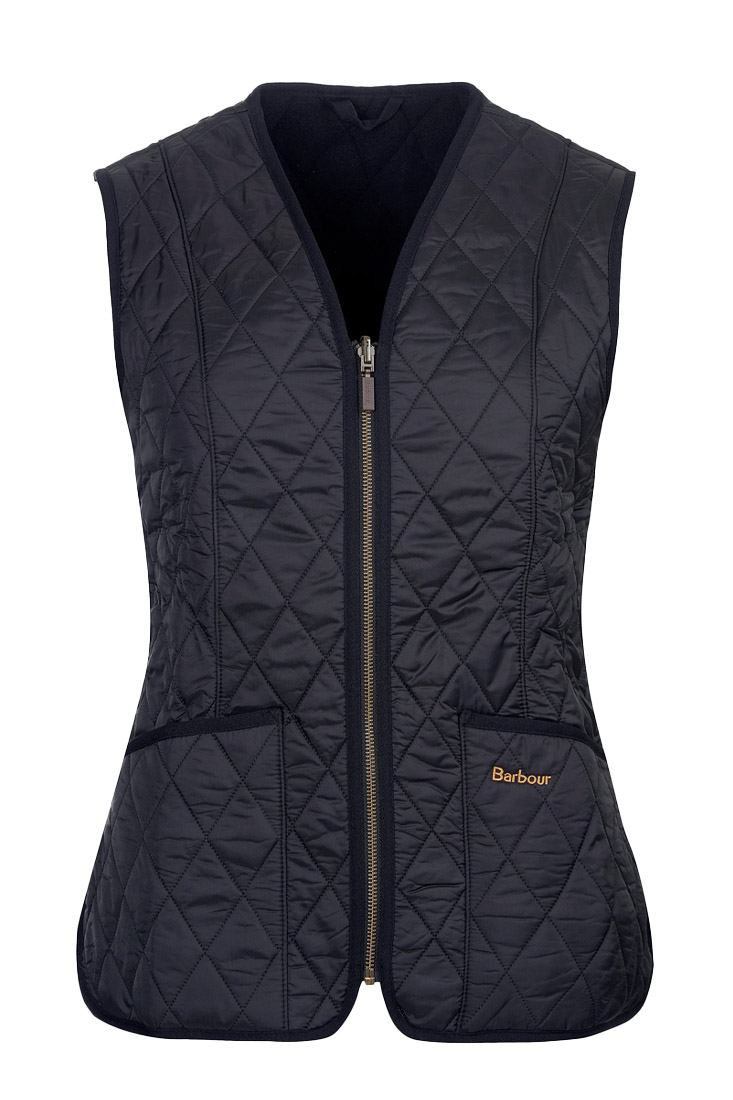 Snygg väst och skönt foder i ett! Denna snygga västen går att knäppa in som ett foder i flera av Barbours damjackor. Den passar till exempel utmärkt till den fina modellen Beadnell. Västen knäpps lätt i och ur med hjälp av blixtlås på insidan av jackorna. Västen är i quiltad nylon och har en insida i skön och värmande fleece. Västen är lätt figursydd och har två fickor fram samt innerficka med dragkedja. Normal i storlek. Om du vill använda västen som ett foder, så välj samma storlek på fodret som på jackan.