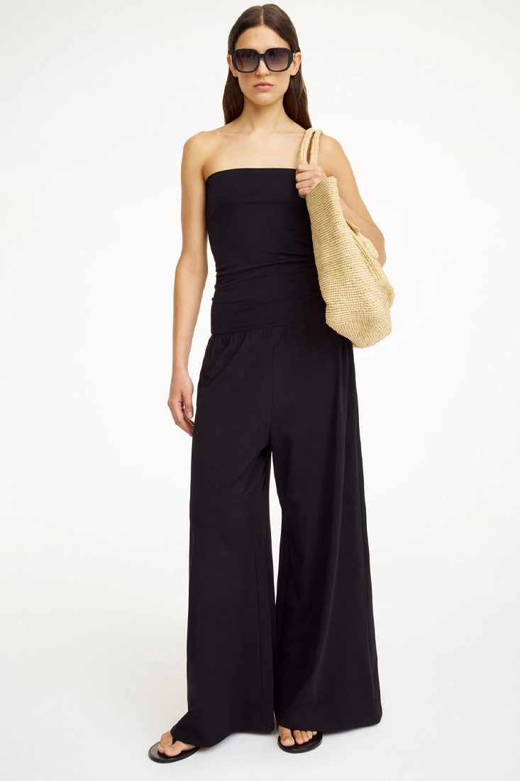 Marciel-jumpsuit från Malene i svart.Ekologisk bomullsblandning med stretch, där den figurnära överdelen kontrasteras av en voluminös underdel. Du kommer att välja den om och om igen till säsongens fester, samtidigt som den är lika lätt att bära på vardagar, stylad med en tröja. Normal i storlek