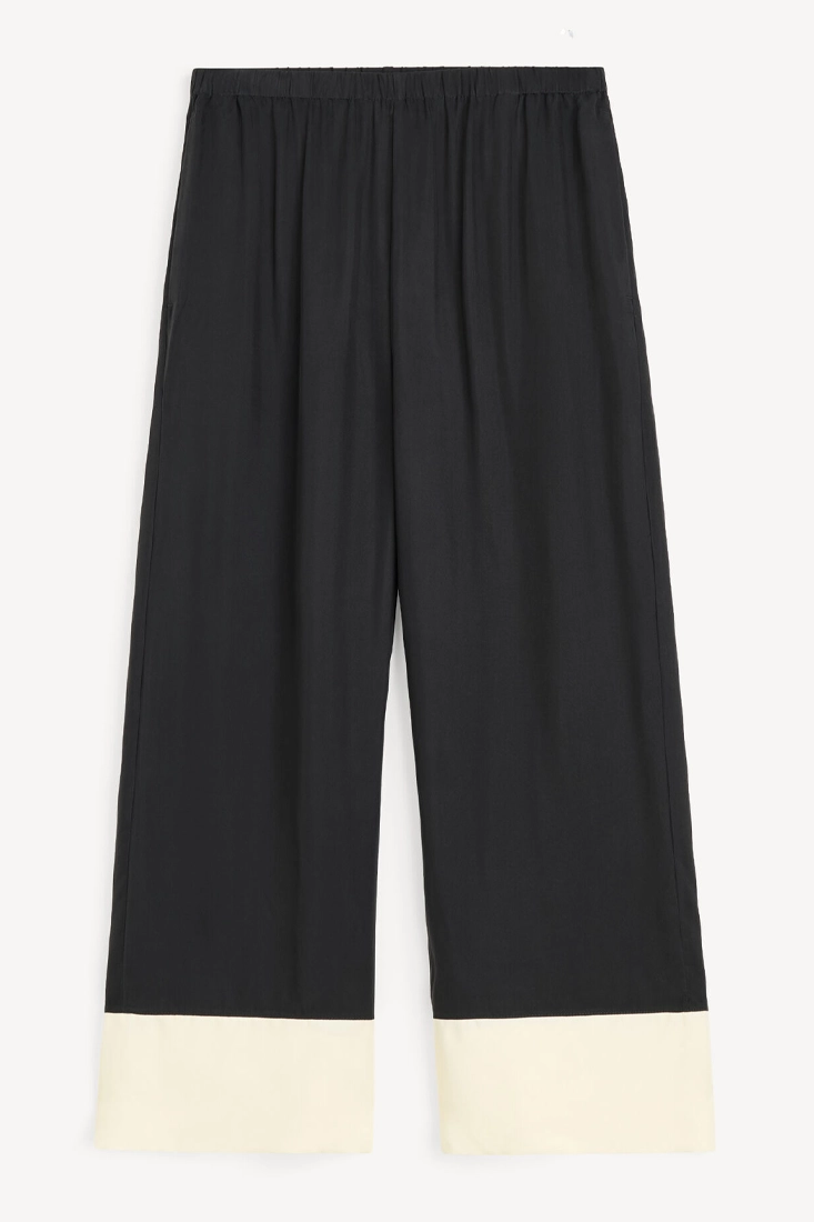 Både eleganta och luftiga är dessa fina Mirabello-byxorna. Tillverkade i en cuproblandning, med detaljer som hög elastisk midja, sidofickor och vida ben. Bär dem tillsammans med matchande Cicie-blusen. Normal i storlek