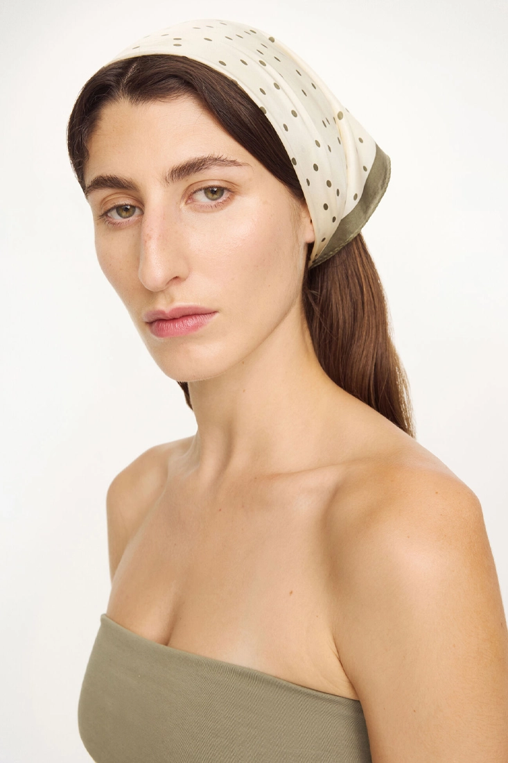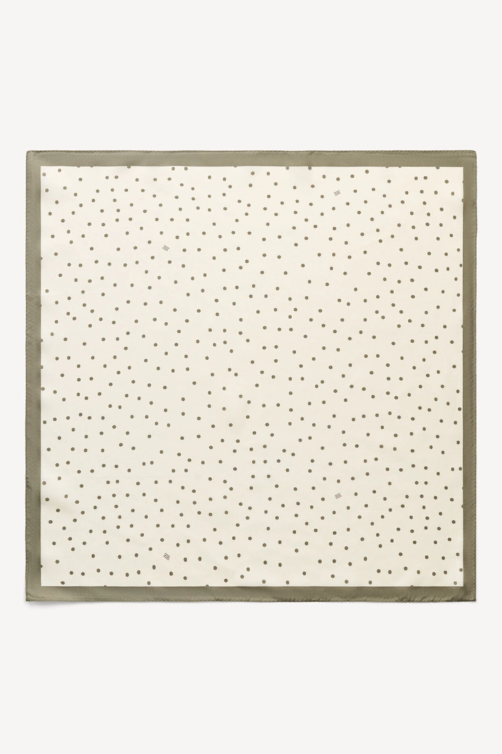 Tillverkad i lyxigt siden och dekorerad med lekfulla prickar. Designen är oändligt mångsidig: knyt den runt halsen, handleden eller runt handtaget på din handväska.