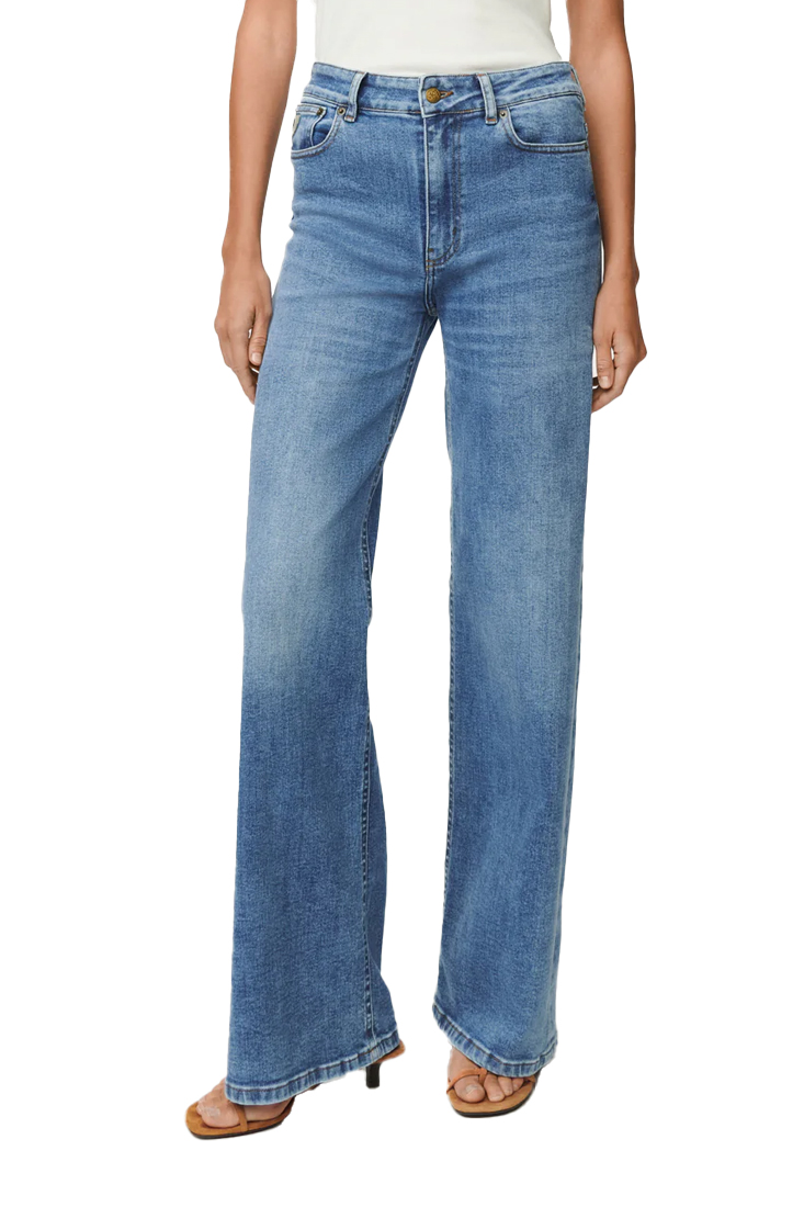 Ett par klassiska jeans i ljusblå tvätt med hög midja och raka, något vidare ben. Modellen är smickrande över höften och faller snyggt utan att vara för vid över låret. Tyget har lätt stretch som ger bra komfort hela dagen samtidigt som jeansen behåller sin form. Dragkedja i gylfen och normal passform i storlek.