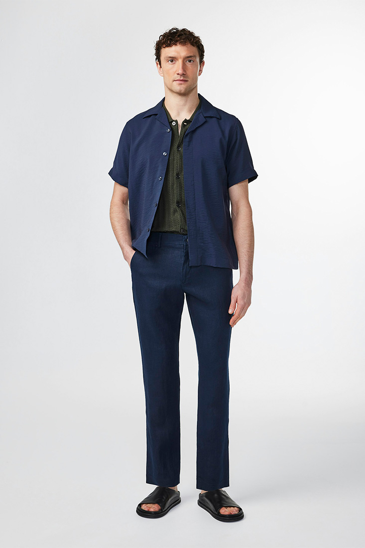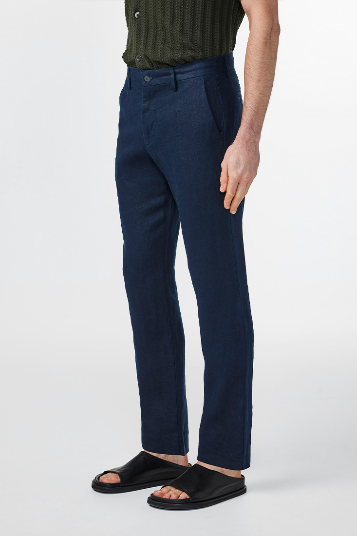 NN07 Theo Tailored Linnebyxa – Marinblå