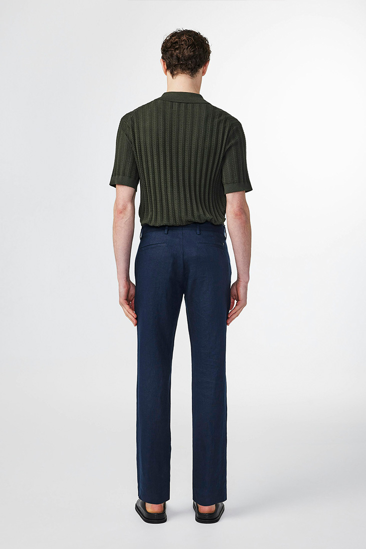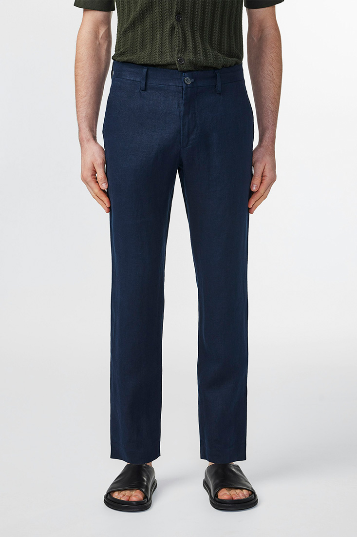 Formella regular fit byxor i 260 g/m2 europeiskt linnetyg med medelhög midja. Med snedställda fickor och paspoalfickor. En riktig klassiker från NN07!