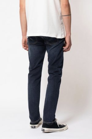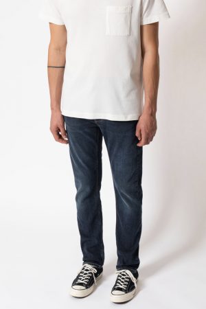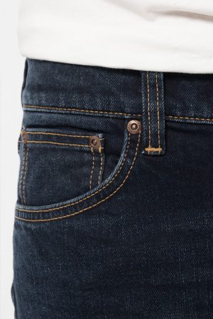 Jeans med en smalare avsmalnande passform. Det avsmalnar jämnt från höften till fotleden, en aspekt som har gjort Lean Dean till en av Nudies mest populära passformar. New Ink är en fin mörk tvätt med lite effekter fram upptill men annars ganska jämn i färgen. Dragkedja i gylfen. Normal i storlek.