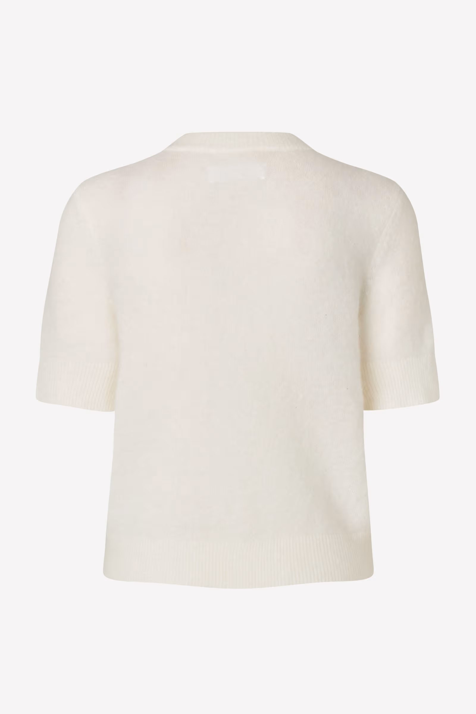 Kortärmad cardigan med normal passform och rund halsringning. Modellen har knäppning fram och ribbade kanter vid krage, ärmslut och nederkant.