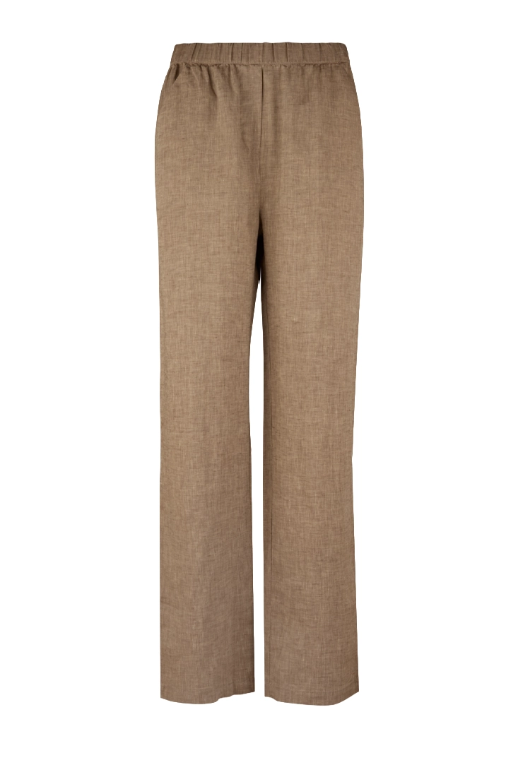 Byxor med vida ben i 100% linne. Modellen har resår i midjan för en bekväm passform samt sidfickor. Lätt och luftig kvalitet som passar bra under varmare dagar.